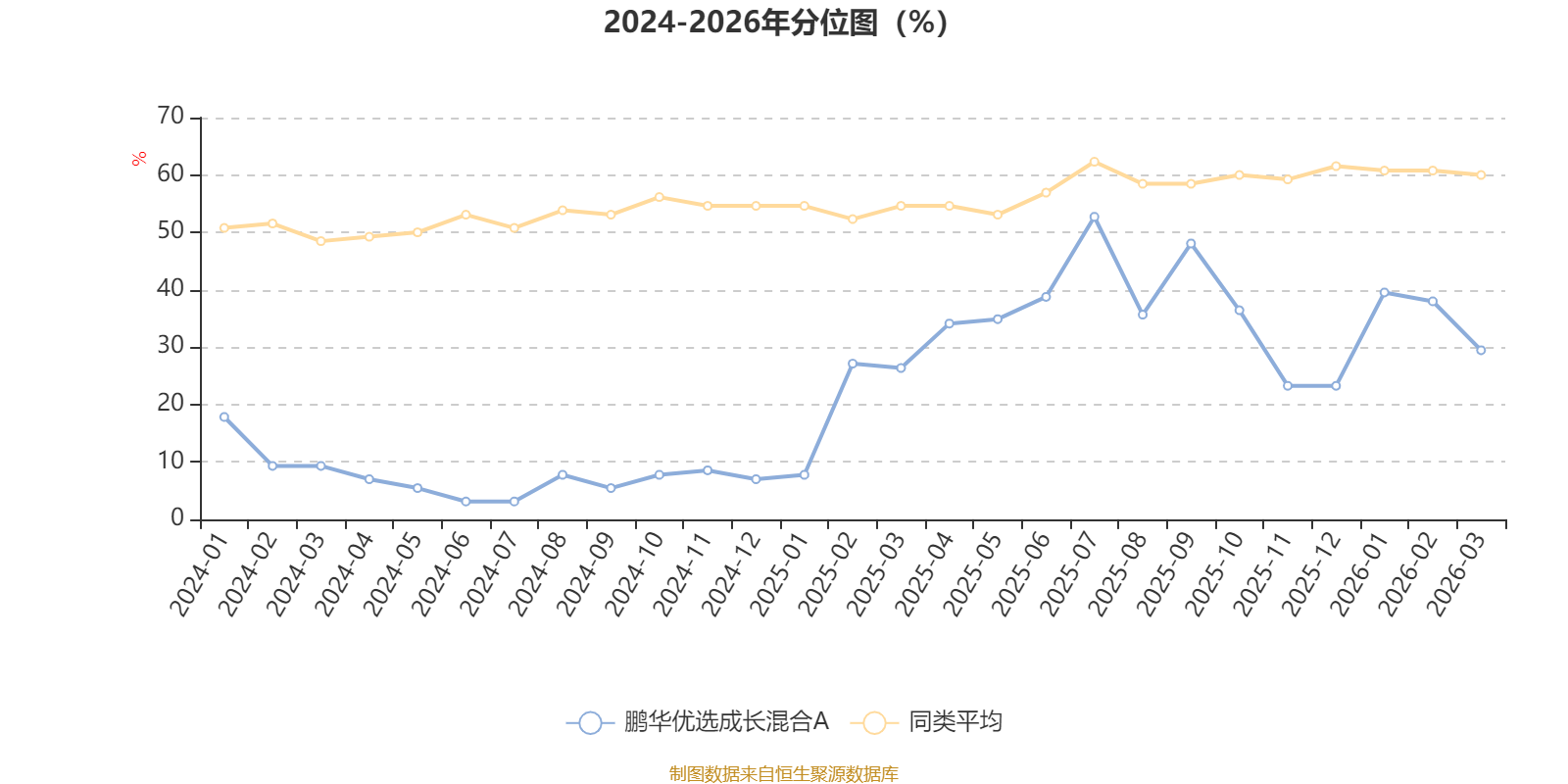 通过所选区间该基金净值增长率分位图,可以观察该基金与同类基金业绩比较情况。图为坐标原点到区间内某时点的净值增长率在同类基金中的分位数。