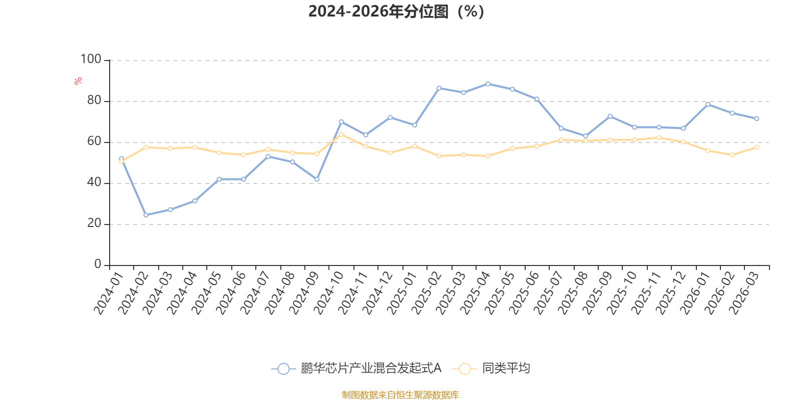 通过所选区间该基金净值增长率分位图,可以观察该基金与同类基金业绩比较情况。图为坐标原点到区间内某时点的净值增长率在同类基金中的分位数。