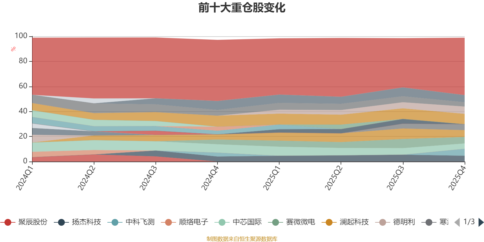 该基金持股集中度较高。截至2025年末,基金十大重仓股分别是北方华创、金海通、海光信息、中科飞测、澜起科技、赛微微电、寒武纪、扬杰科技、中芯国际、豪威集团。