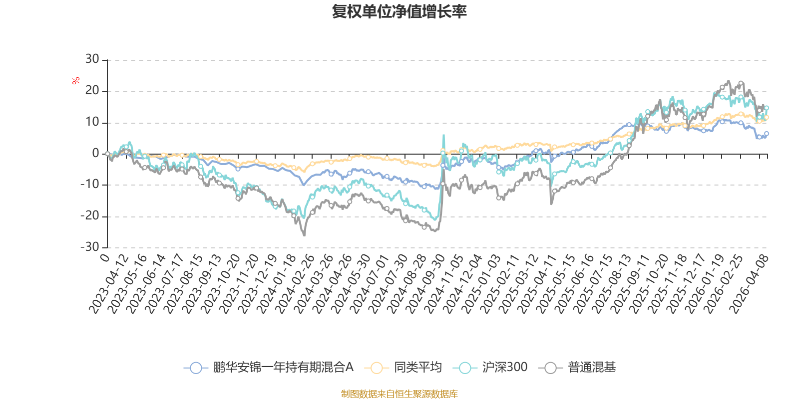 截至4月8日,鹏华安锦一年持有期混合A近三个月复权单位净值增长率为-2.45%,位于同类可比基金603/629;近半年复权单位净值增长率为-1.65%,位于同类可比基金581/629;近一年复权单位净值增长率为8.91%,位于同类可比基金241/629;近三年复权单位净值增长率为6.51%,位于同类可比基金436/581。