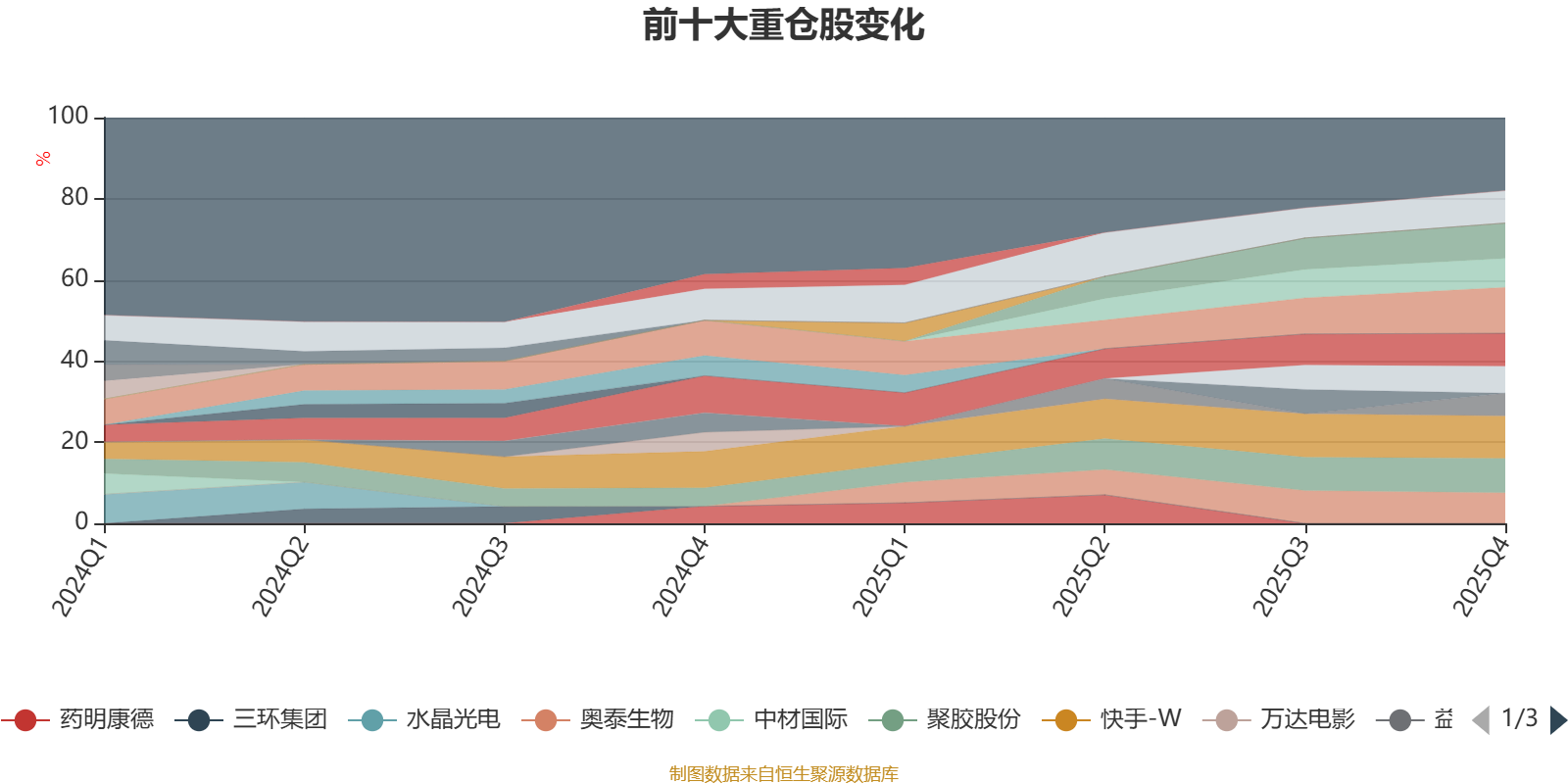 截至2025年末,基金十大重仓股分别是北京人力、快手-W、ST人福、聚胶股份、星球石墨、赛特新材、奥泰生物、天益医疗、派林生物、益方生物。