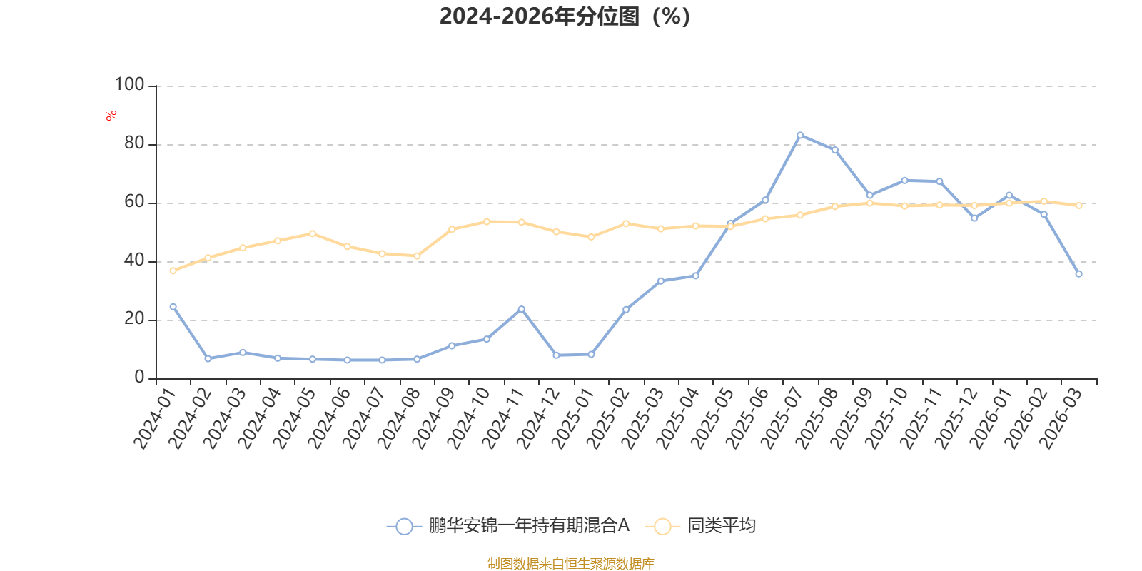 通过所选区间该基金净值增长率分位图,可以观察该基金与同类基金业绩比较情况。图为坐标原点到区间内某时点的净值增长率在同类基金中的分位数。