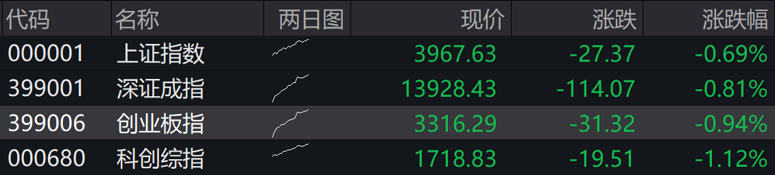 4月9日,A股四大指数集体低开,沪指跌0.69%,深成指跌0.81%,创业板指跌0.94%,科创综指跌1.12%。