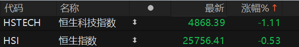 恒生指数低开0.53% 恒生科技指数跌1.11%