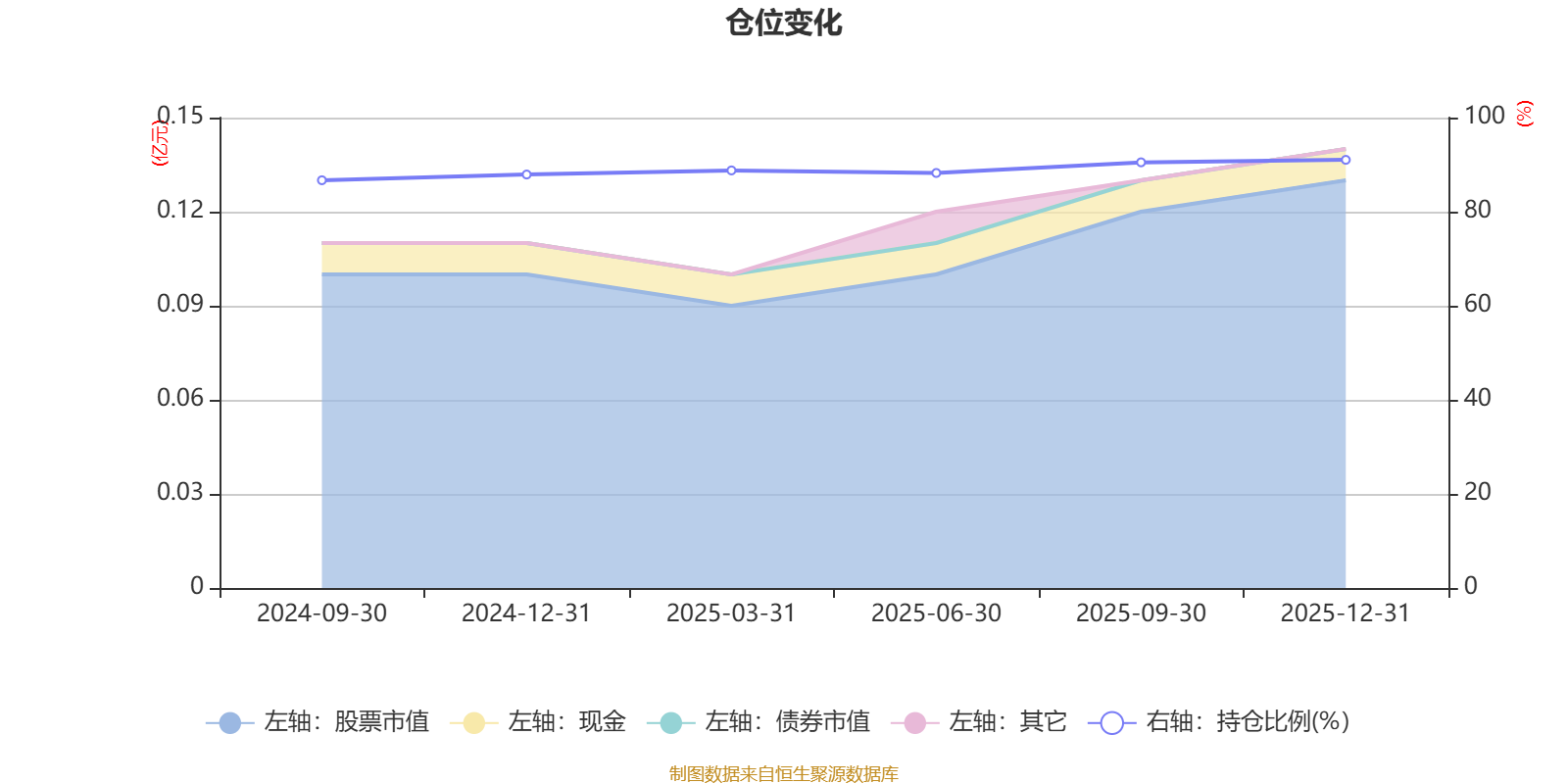 据定期报告数据统计,成立以来平均股票仓位为88.85%,同类平均为84.04%。2025年末基金达到91.02%的最高仓位,2024年三季度末最低,为86.68%。