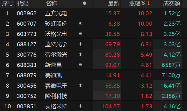 玻璃基板板块表现活跃 五方光电、彩虹股份涨停