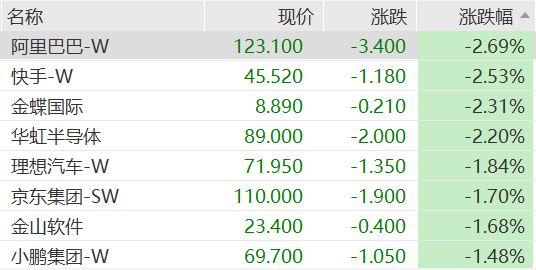 港股科网股全线下跌,阿里跌超2%