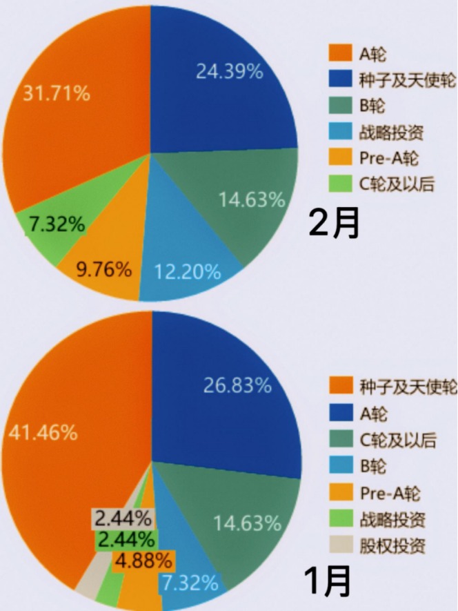 执中ZERONE显示,今年前两个月,机器人赛道合计发生投融资事件82笔,分别占1月、2月投融资总数的3.5%、5%;获得投资的公司达到81家(按融资事件分别计算);完成A轮、种子及天使轮的融资事件较多,占比过半。