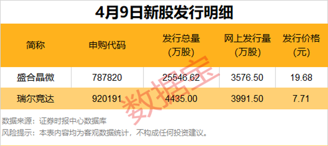 今日共有2只新股申购,分别为科创板的盛合晶微、北交所的瑞尔竞达。