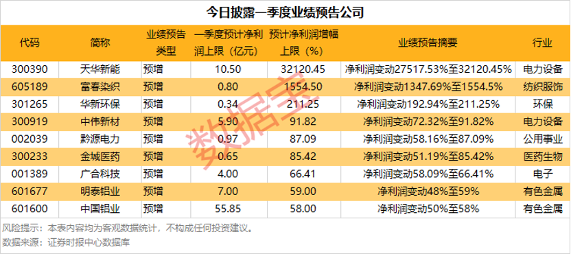 从市场表现看,今日发布一季度业绩预告个股早盘股价全线上涨,富春染织(605189)开盘涨停,天华新能、金城医药早盘最大涨幅均超10%。