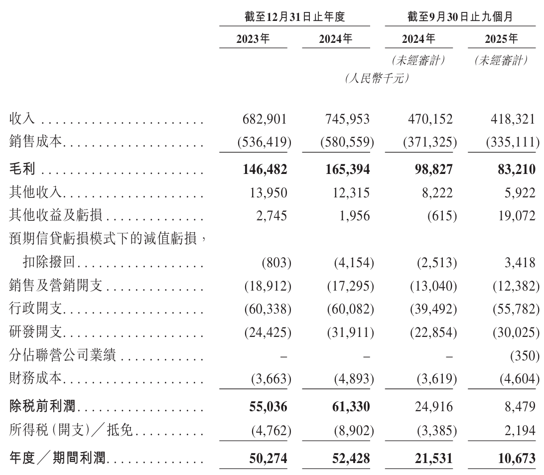 这种“寄生式”的增长模式,直接导致了公司在定价权上的弱势。当产业链上游的利润被挤压时,上海精智几乎没有还价的余地。最新的财务数据显示,公司近期利润出现大幅度下滑,2025年前9个月净利润大幅下跌50.4%,仅剩1067万元。这种“增收不增利”的困局,正是制造业底色在巨头阴影下艰难求存的写照。