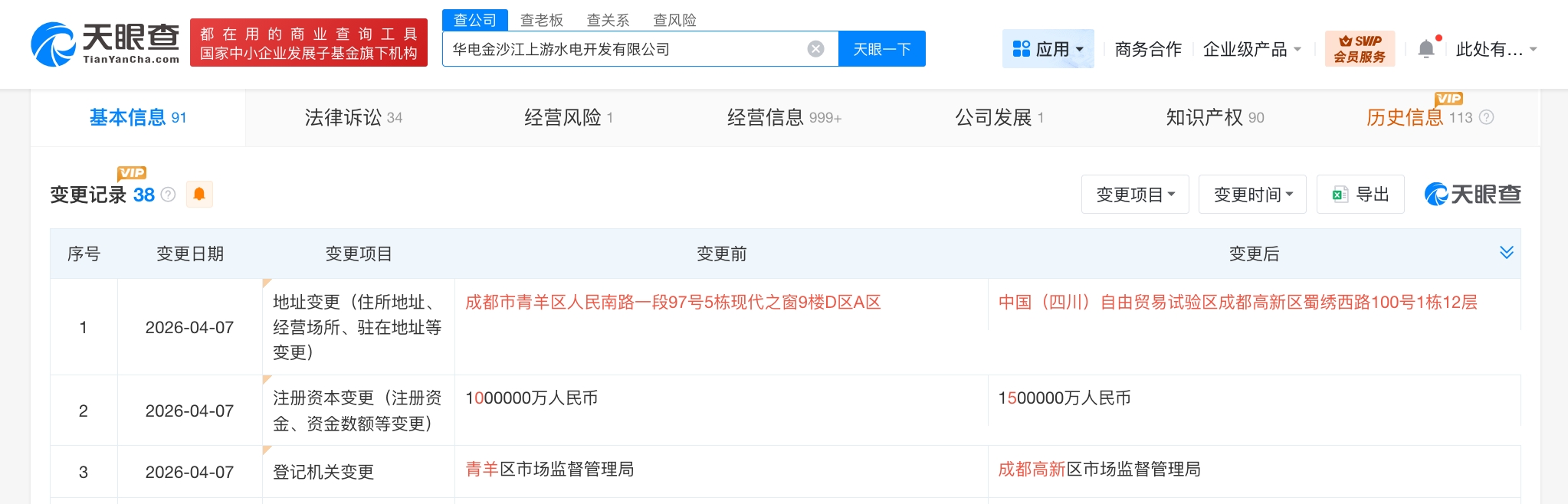 每经AI快讯,天眼查工商信息显示,近日,华电金沙江上游水电开发有限公司发生工商变更,注册资本由100亿元增至150亿元,增幅50%。该公司成立于2006年6月,法定代表人为汪良,经营范围包括水利资源投资及开发、电站的运营管理、电力生产等。股东信息显示,该公司由中国华电集团有限公司、四川铁投康巴投资有限责任公司、西藏开发投资集团有限公司、华电国际(600027)共同持股。