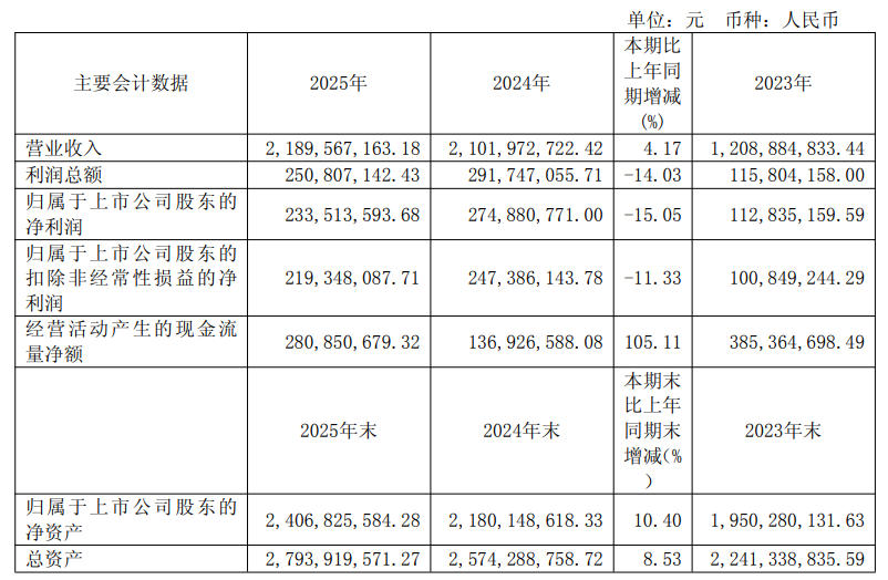 4月8日晚间,天德钰(688252)披露2025年年报及2026年一季报。2025年,公司陷入“增收不增利”:实现营业收入21.9亿元,同比增长4.17%;归母净利润2.34亿元,同比下降15.05%;扣非净利润2.19亿元,同比下降11.33%。