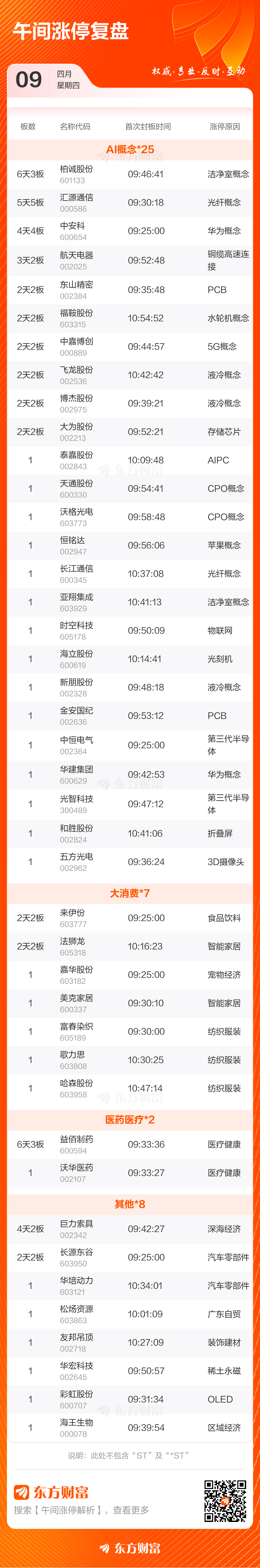 4月9日午间涨停复盘:47股涨停 柏诚股份6天3板