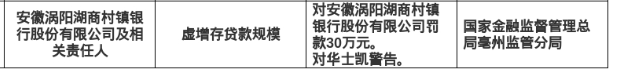 安徽涡阳湖商村镇银行被罚30万,涉虚增存贷款规模