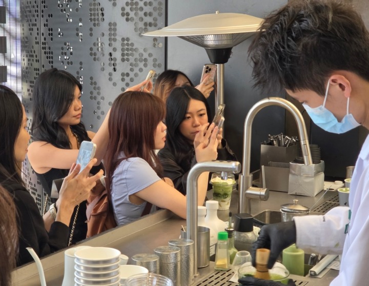 新加坡游客郭芷亦一家是通过小红书上外国游客的推荐慕名而来。郭芷亦告诉记者,她们一家在上海旅游9天,已经去过外滩、周恩来公馆、迪士尼等地,而Matcha Wang是专门排队来打卡的一站。“排队大约15分钟,我觉得不虚此行,那只小羊实在太讨喜了。”她一边说,一边举起手机给杯中的拉花拍照,准备发在自己的社交媒体上。