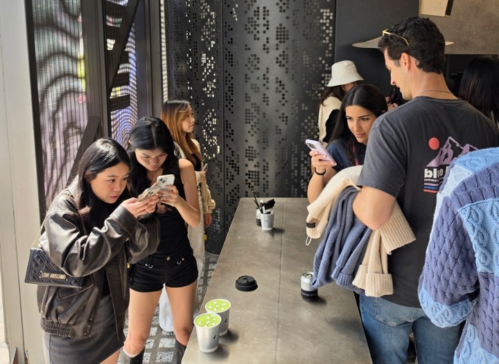 Matcha Wang去年12月正式开业,凭借一款“小羊莉莉”抹茶拿铁,在短短三个月内成为了许多外国游客来上海的必打卡地之一。Matcha Wang负责人告诉记者,每日客流稳定在900至1200人,外国游客占比很高。“上午10时开门就有人排队,一直持续到晚上闭店。最多的时候,店外等候区挤了四五十人,点单后要等将近一小时才能取到。”
