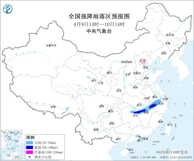 中央气象台4月9日10时继续发布暴雨蓝色预警: