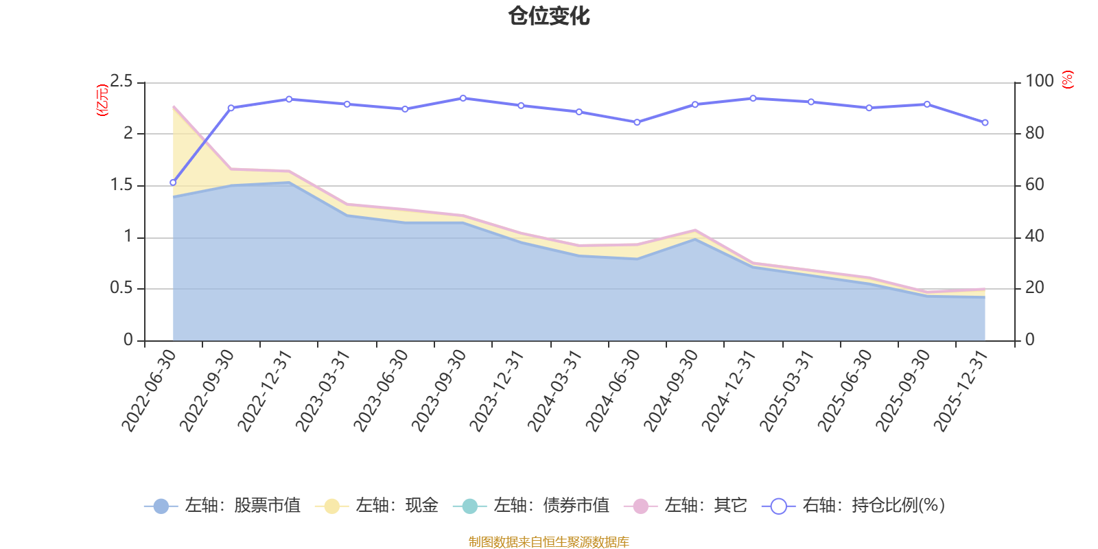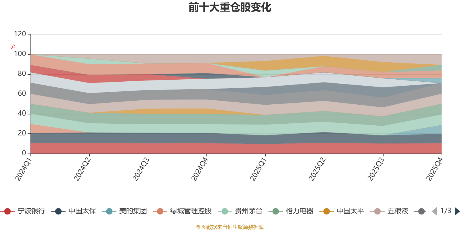 该基金持股集中度较高,且持股标的较为稳定,近2年前十大重仓股集中度长期超过60%。截至2025年末,基金十大重仓股分别是格力电器、招商银行、贵州茅台、宁波银行、五粮液、中国太保、美的集团、中国平安、南京银行、中国国航。