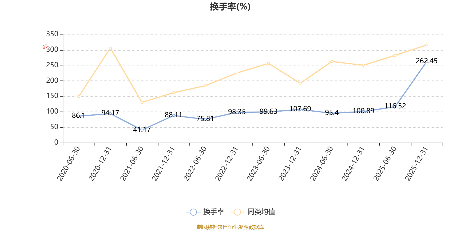 截至2025年12月31日,基金最近一年换手率约430.98%,持续低于同类均值。