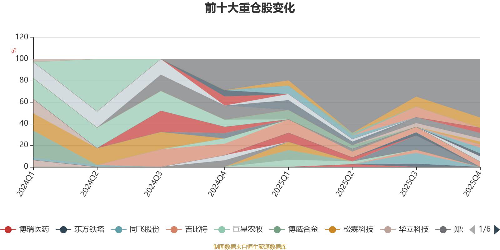 截至2025年末,基金十大重仓股分别是紫金矿业、农业银行、美的集团、工商银行、双汇发展、中国神华、新易盛、牧原股份、中信特钢、南京银行。