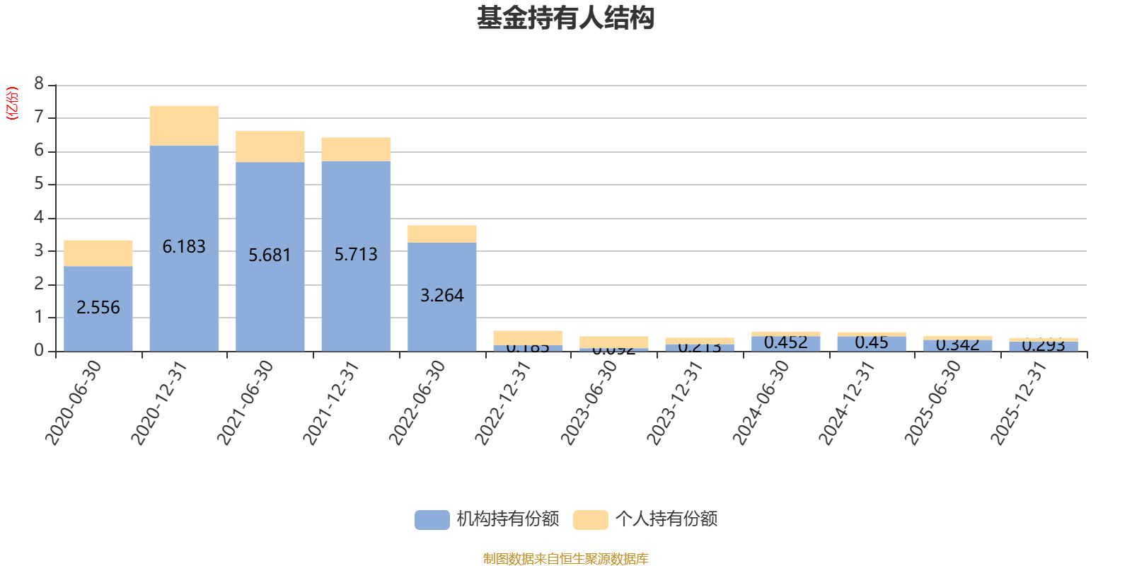 截至2025年12月31日,基金持有人共计383户,合计持有3965.85万份。其中管理人员工持有4.26万份,占比0.11%,机构持有份额占比73.95%,个人投资者占比26.05%。