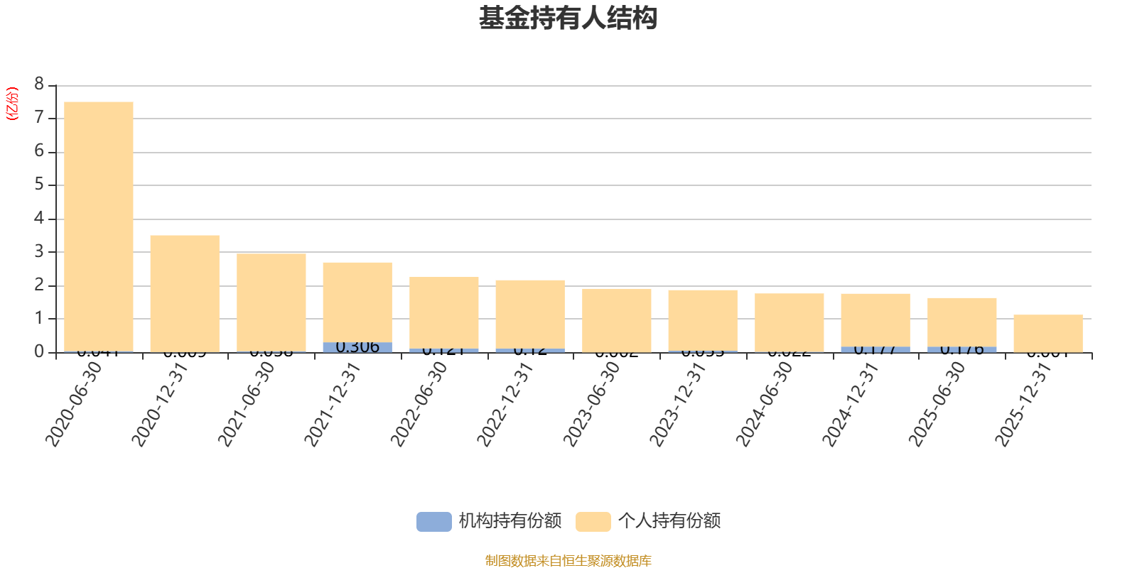 截至2025年12月31日,基金持有人共计1.03万户,合计持有1.13亿份。其中管理人员工持有146.08万份,占比1.29%,机构持有份额占比0.08%,个人投资者占比99.92%。