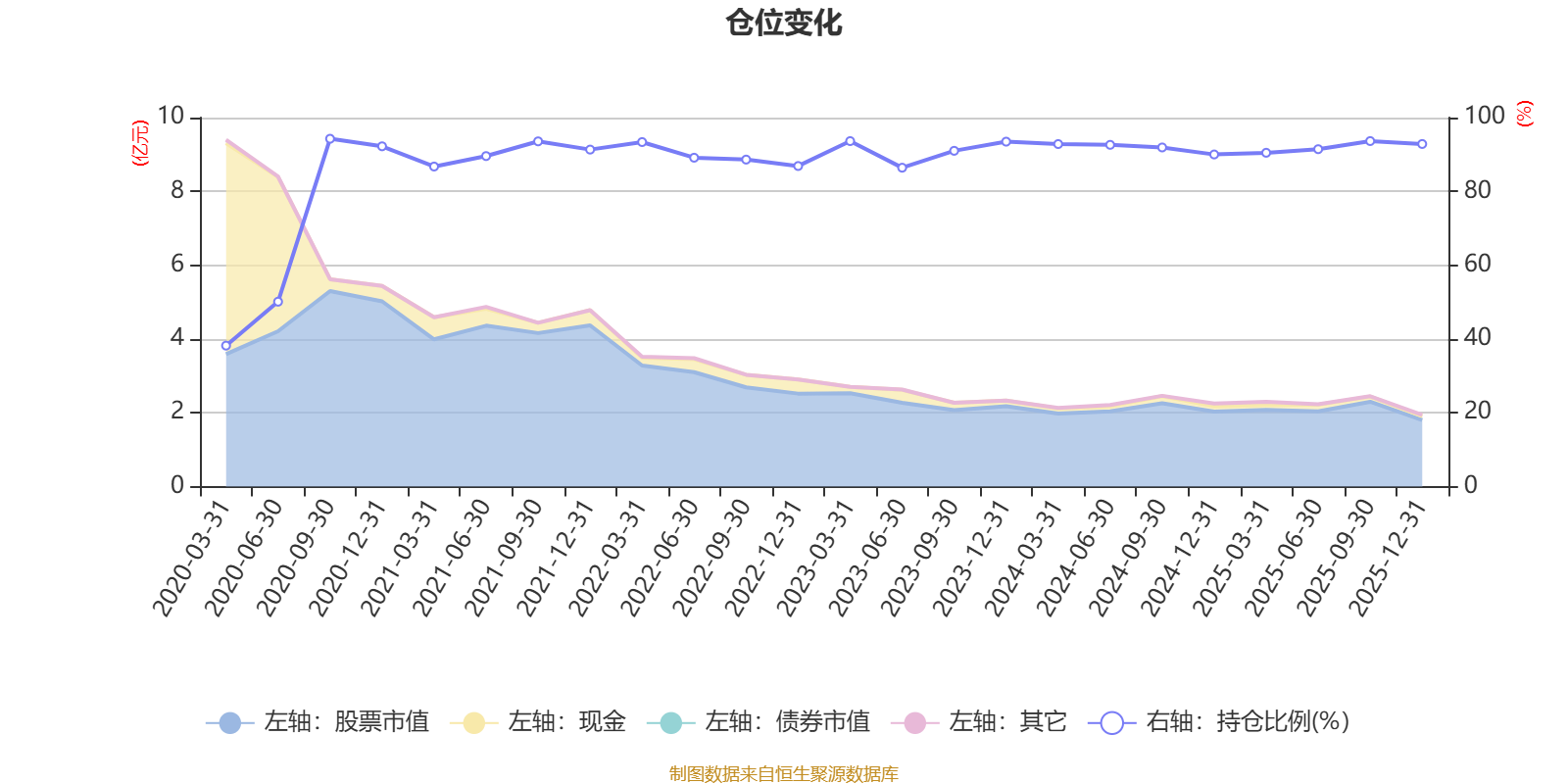 据定期报告数据统计,近三年平均股票仓位为91.69%,同类平均为85.83%。2020年三季度末基金达到94.27%的最高仓位,2020年一季度末最低,为38.2%。
