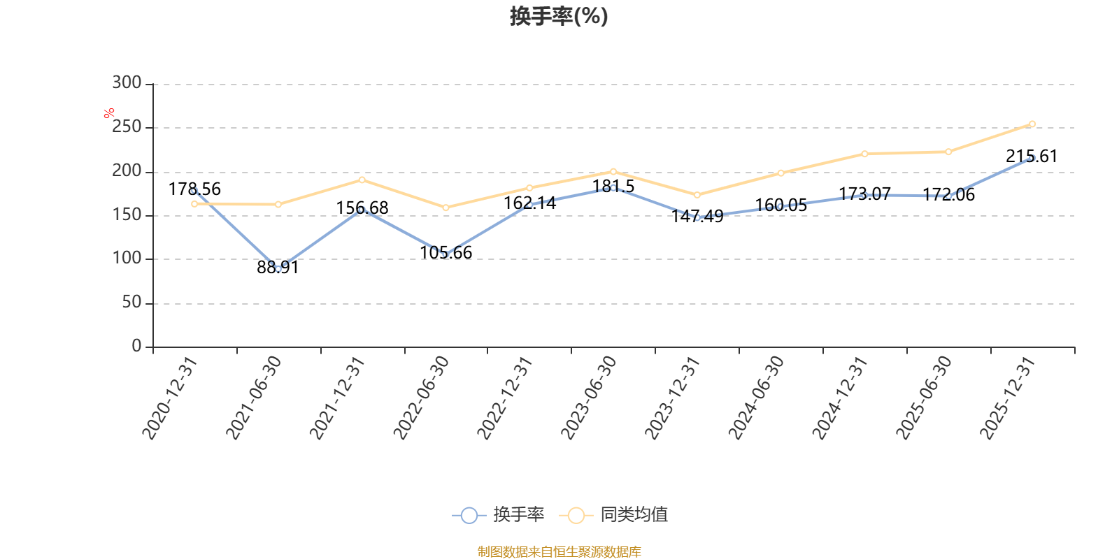 截至2025年12月31日,基金最近一年换手率约387.23%,持续5年低于同类均值。