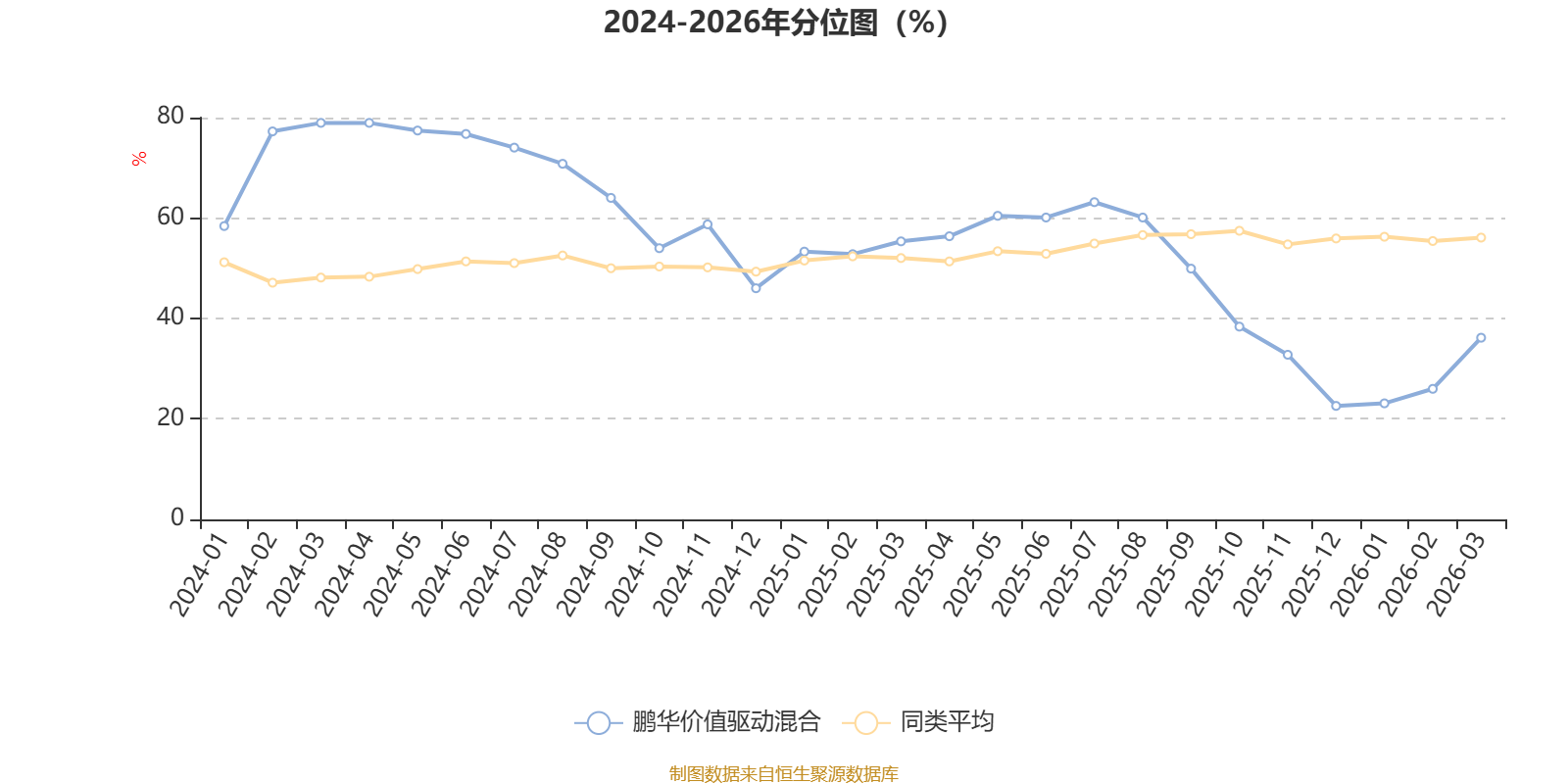 通过所选区间该基金净值增长率分位图,可以观察该基金与同类基金业绩比较情况。图为坐标原点到区间内某时点的净值增长率在同类基金中的分位数。