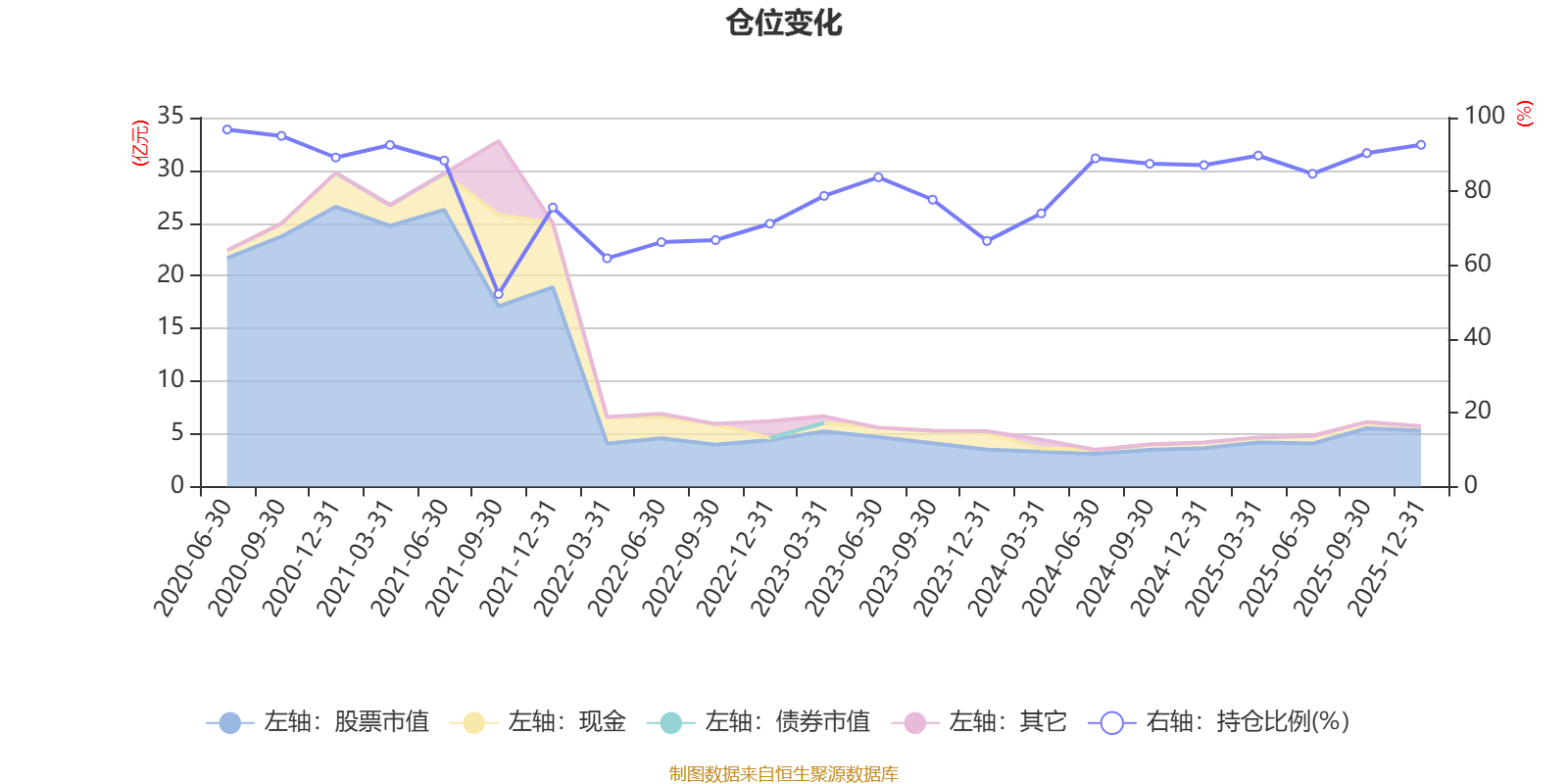 据定期报告数据统计,近三年平均股票仓位为83.5%,同类平均为86.9%。2020年上半年末基金达到96.77%的最高仓位,2021年三季度末最低,为52.17%。