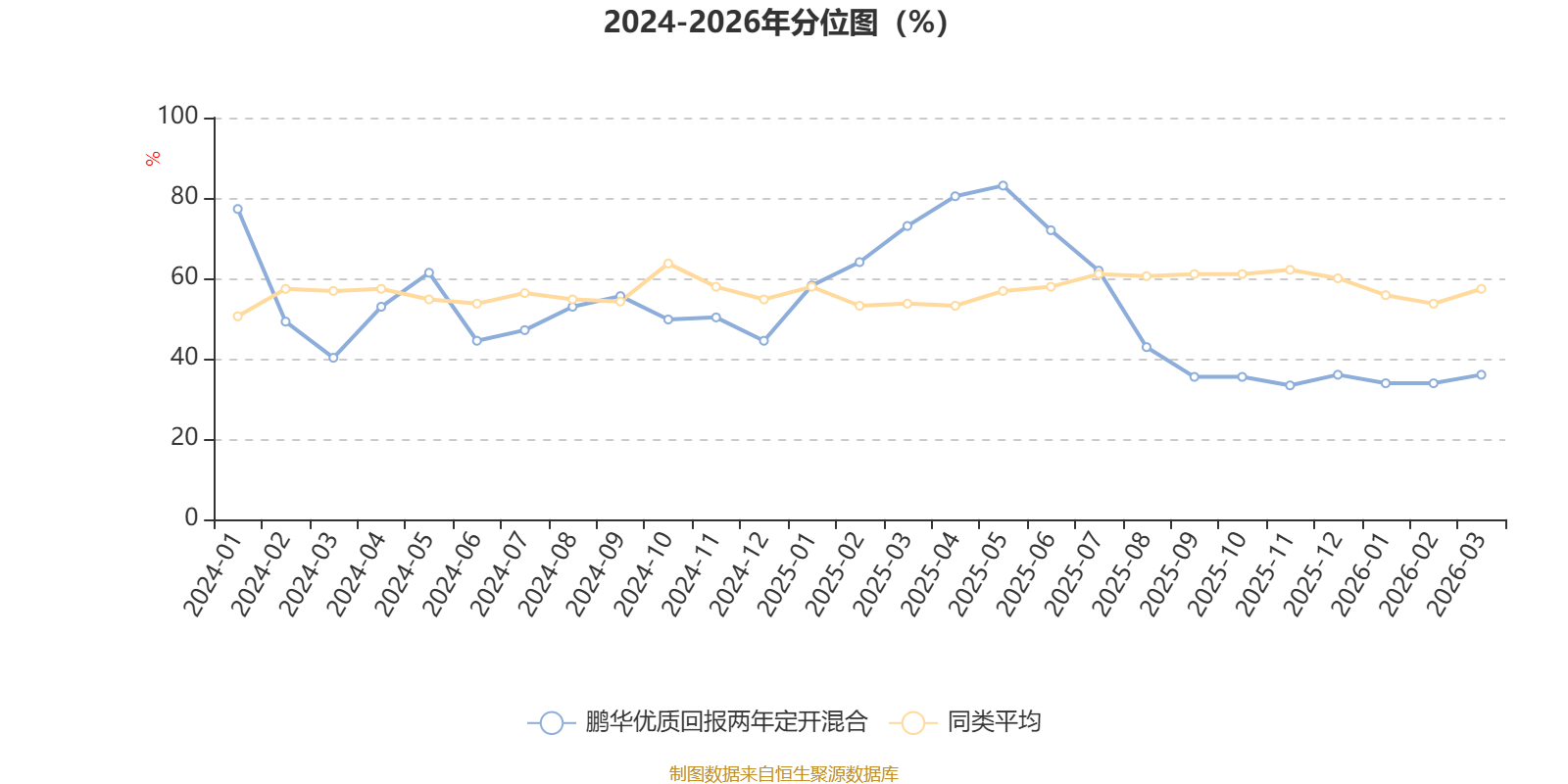 通过所选区间该基金净值增长率分位图,可以观察该基金与同类基金业绩比较情况。图为坐标原点到区间内某时点的净值增长率在同类基金中的分位数。