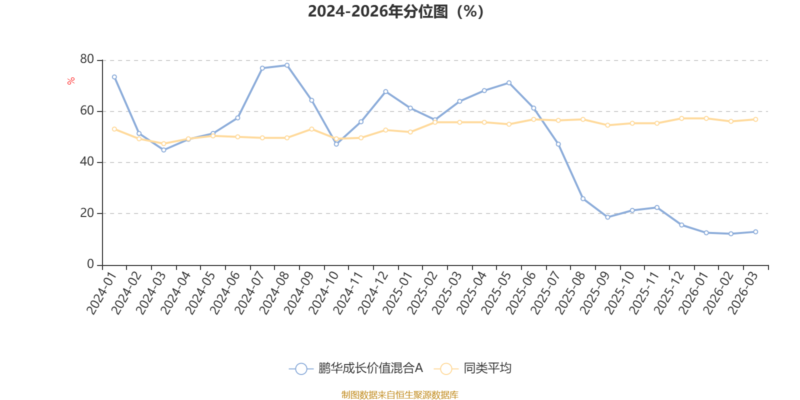 通过所选区间该基金净值增长率分位图,可以观察该基金与同类基金业绩比较情况。图为坐标原点到区间内某时点的净值增长率在同类基金中的分位数。