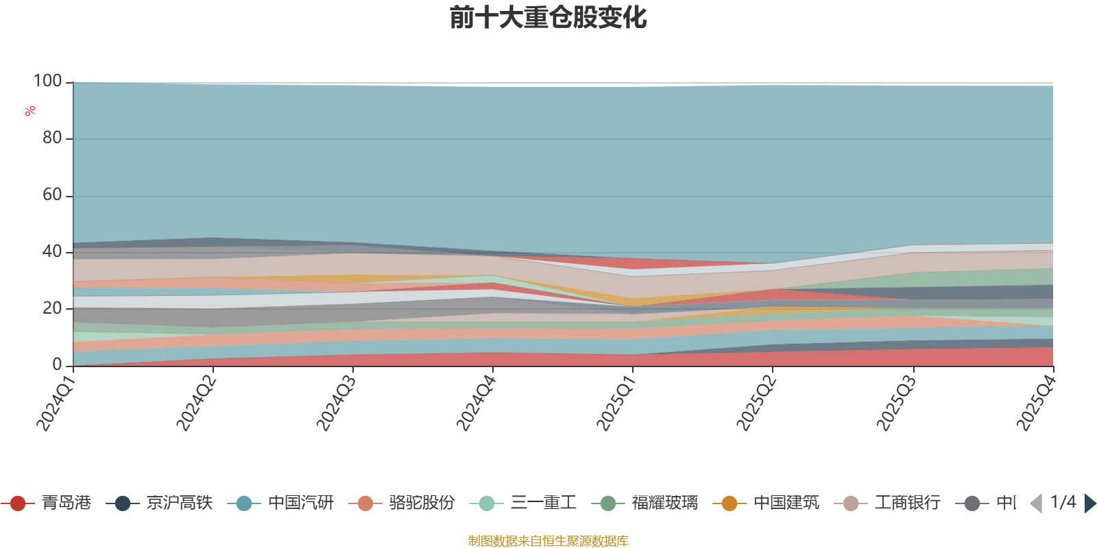 截至2025年末,基金十大重仓股分别是青岛港、星宇股份、美亚光电、新媒股份、中国汽研、福耀玻璃、格力电器、京沪高铁、三一重工、腾讯控股。