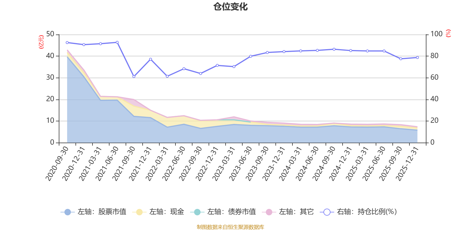 据定期报告数据统计,近三年平均股票仓位为82.12%,同类平均为86.12%。2021年上半年末基金达到92.78%的最高仓位,2021年三季度末最低,为61.15%。