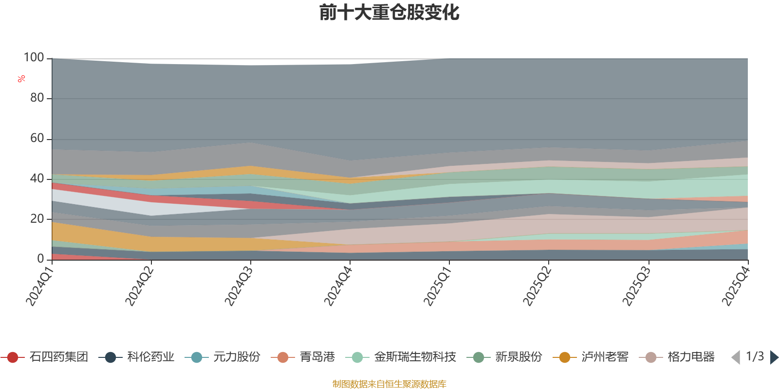 该基金持股集中度较高。截至2025年末,基金十大重仓股分别是格力电器、腾讯控股、贵州茅台、青岛港、科伦药业、美的集团、ST人福、山金国际、元力股份、五粮液。