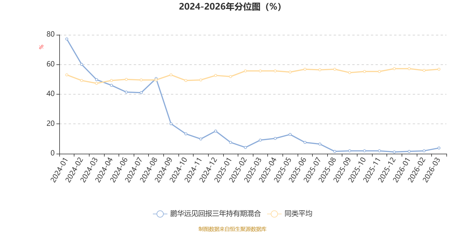 通过所选区间该基金净值增长率分位图,可以观察该基金与同类基金业绩比较情况。图为坐标原点到区间内某时点的净值增长率在同类基金中的分位数。