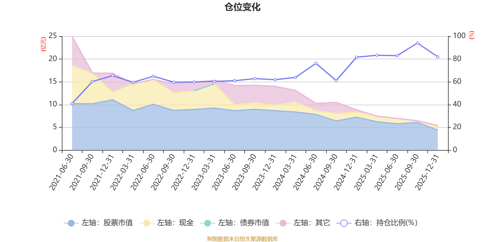 据定期报告数据统计,近三年平均股票仓位为72.63%,同类平均为86.12%。2025年三季度末基金达到94.12%的最高仓位,2021年上半年末最低,为40.93%。