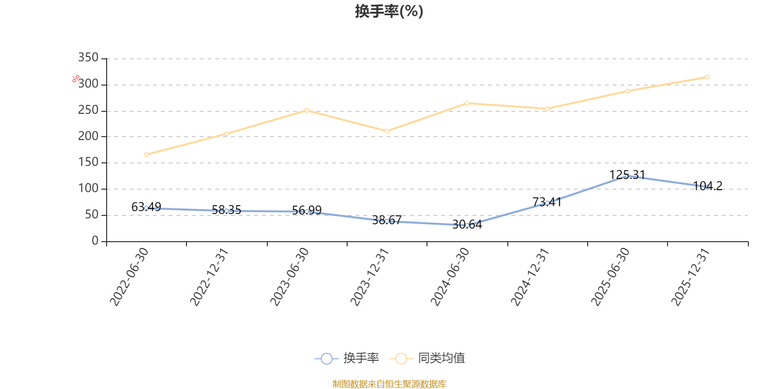 截至2025年12月31日,基金最近一年换手率约231.38%,持续低于同类均值。