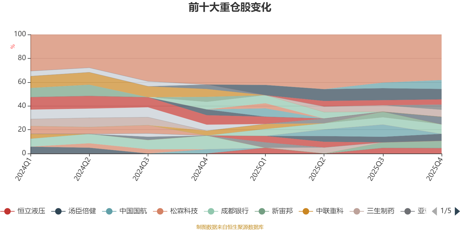 该基金持股集中度较高。截至2025年末,基金十大重仓股分别是三棵树、睿创微纳、河钢资源、经纬恒润、新宙邦、奕瑞科技、TCL科技、恒立液压、海吉亚医疗、天岳先进。
