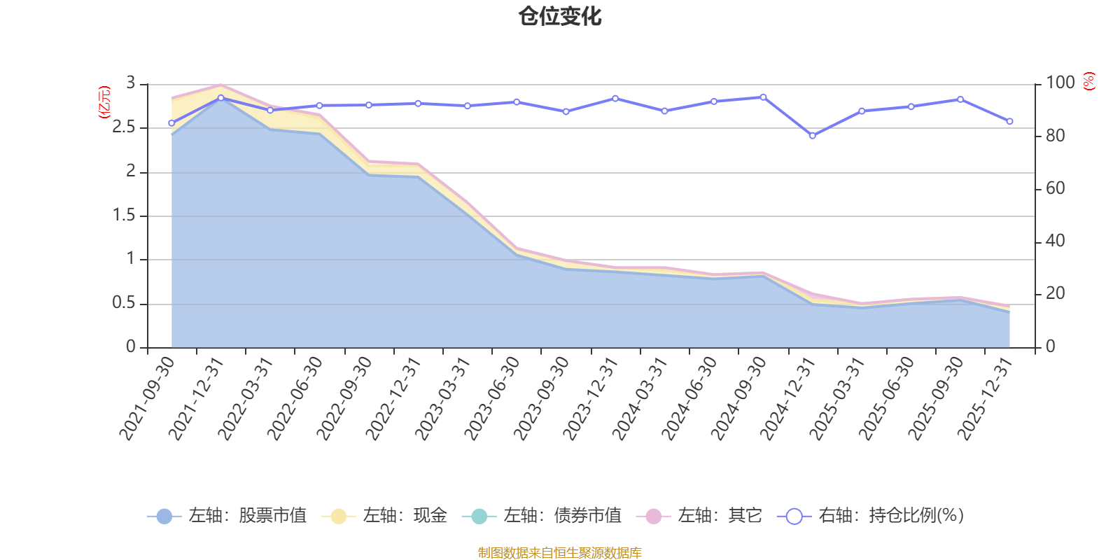据定期报告数据统计,近三年平均股票仓位为90.72%,同类平均为84.04%。2024年三季度末基金达到95.01%的最高仓位,2024年末最低,为80.41%。