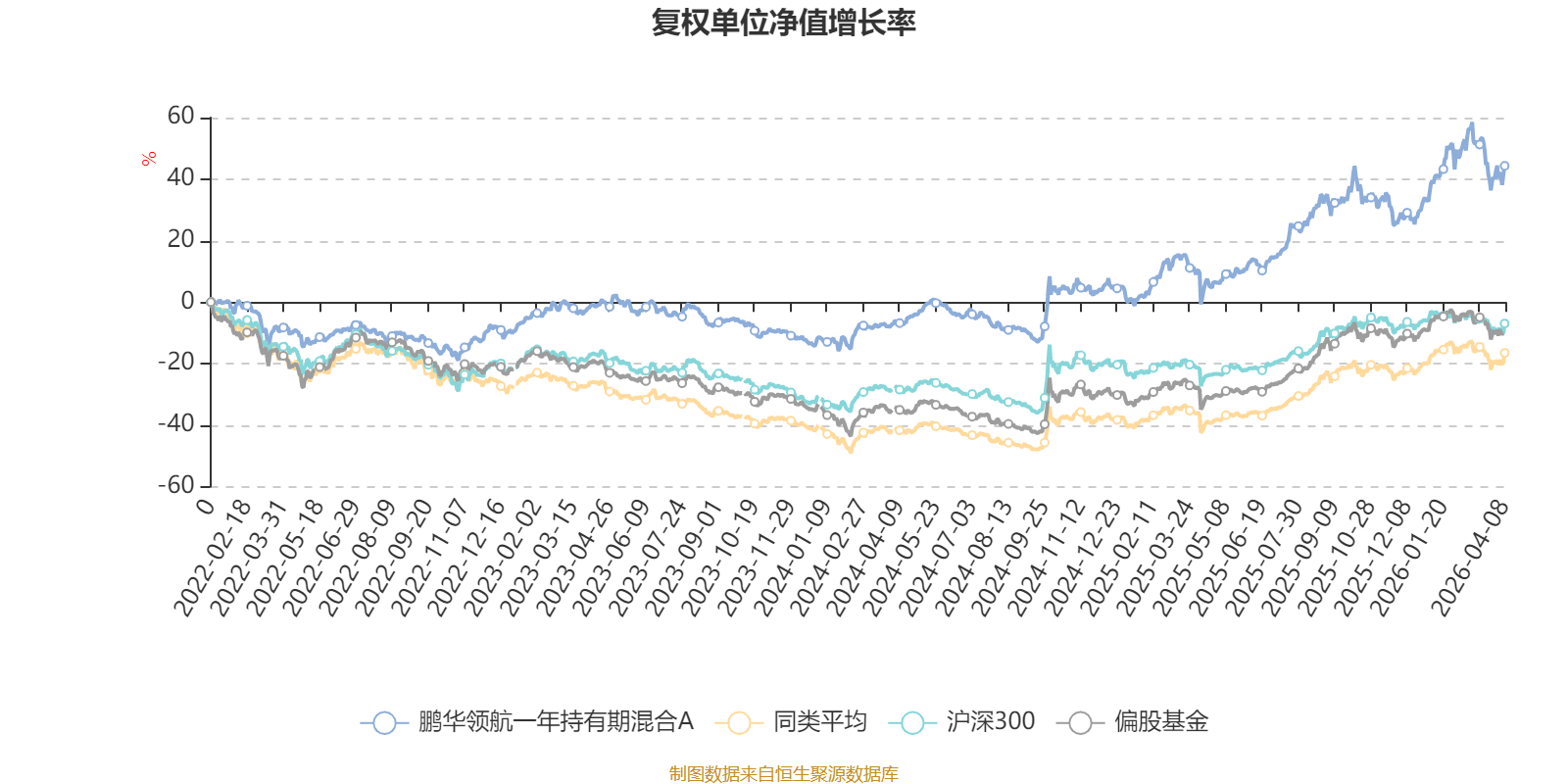 截至4月8日,鹏华领航一年持有期混合A近三个月复权单位净值增长率为4.17%,位于同类可比基金172/689;近半年复权单位净值增长率为1.54%,位于同类可比基金391/689;近一年复权单位净值增长率为42.61%,位于同类可比基金316/685;近三年复权单位净值增长率为45.13%,位于同类可比基金55/417。