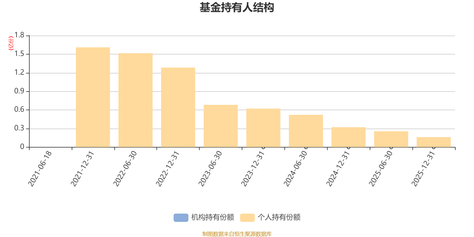 截至2025年12月31日,基金持有人共计528户,合计持有1608.5万份。其中管理人员工持有21.11万份,占比1.31%,机构持有份额占比0.00%,个人投资者占比100.00%。