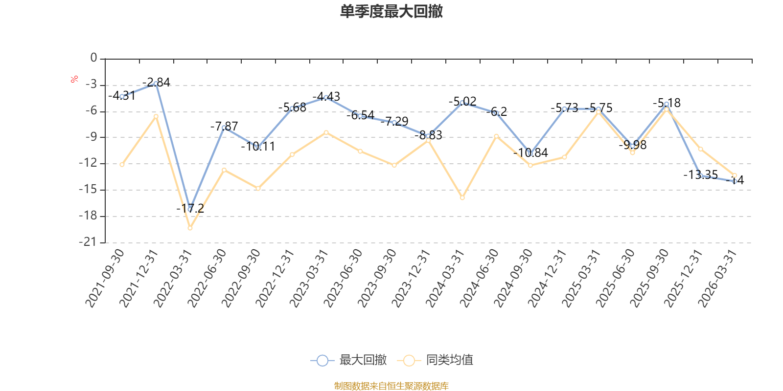 截至4月8日,基金近三年最大回撤为17.95%,同类可比基金排名16/392。单季度最大回撤出现在2022年一季度,为17.2%。