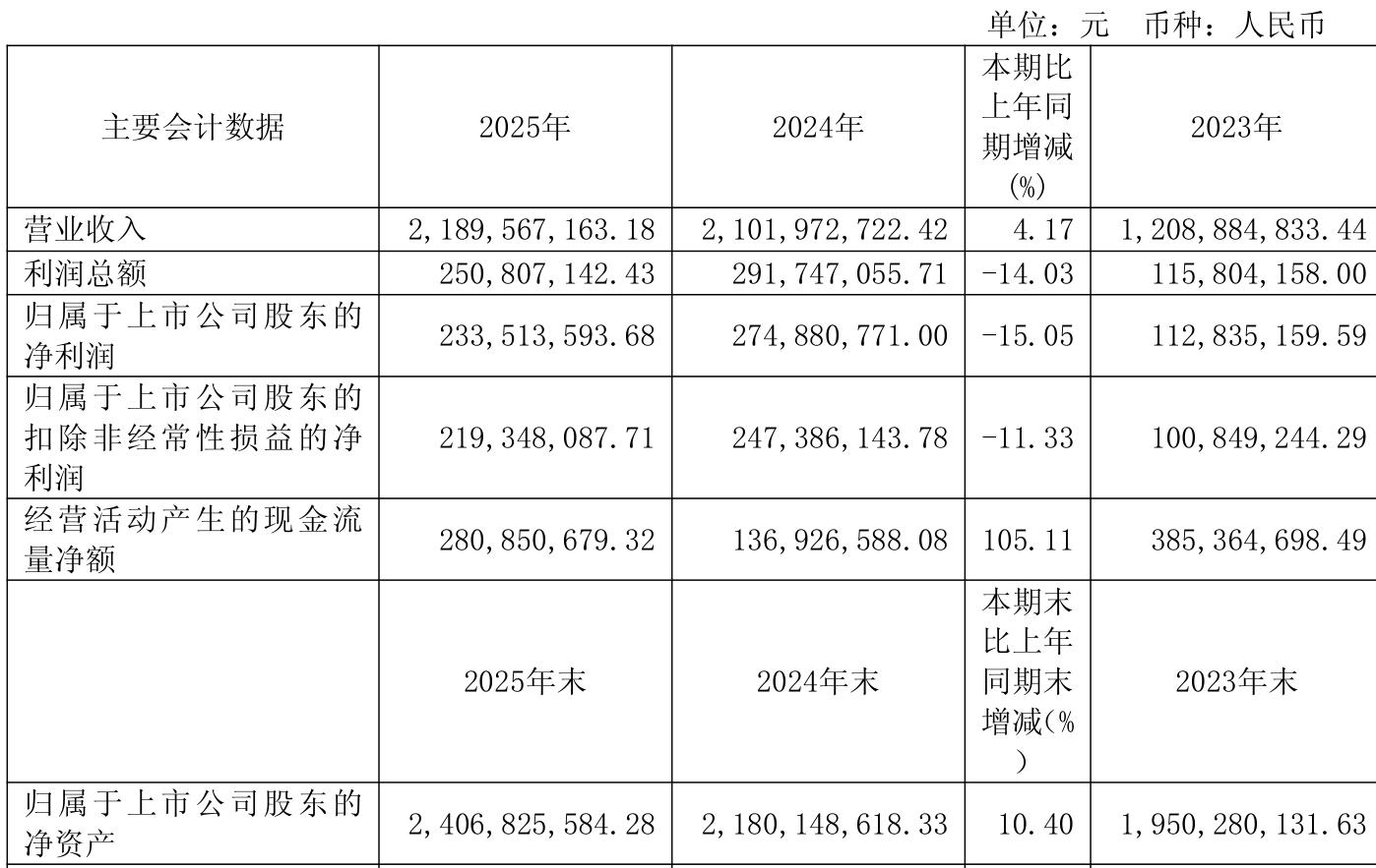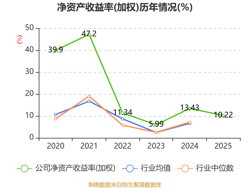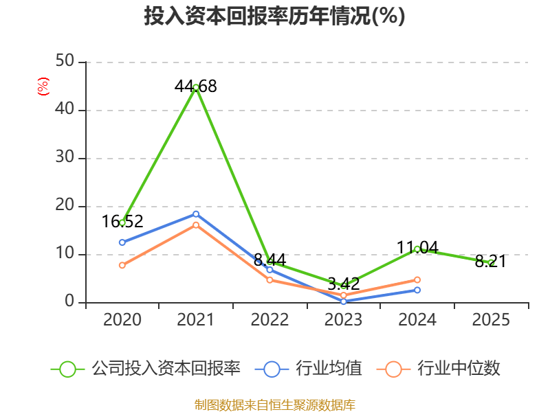 数据显示,2025年公司加权平均净资产收益率为10.22%,较上年同期下降3.21个百分点。公司2025年投入资本回报率为8.21%,较上年同期下降2.83个百分点。
