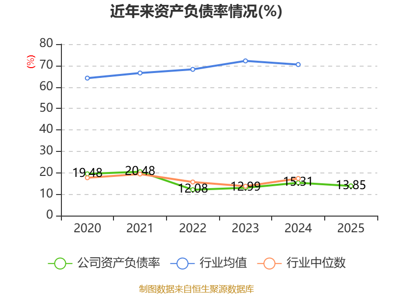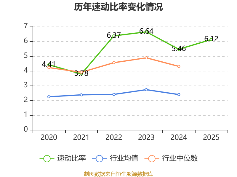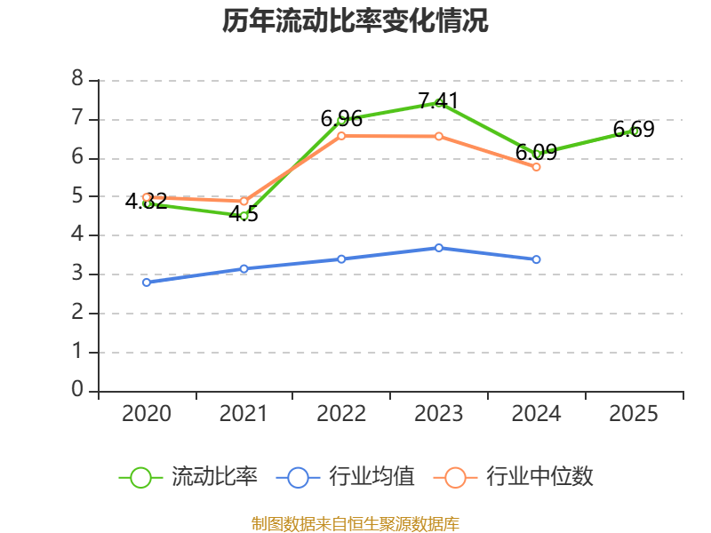 2025年,公司流动比率为6.69,速动比率为6.12。
