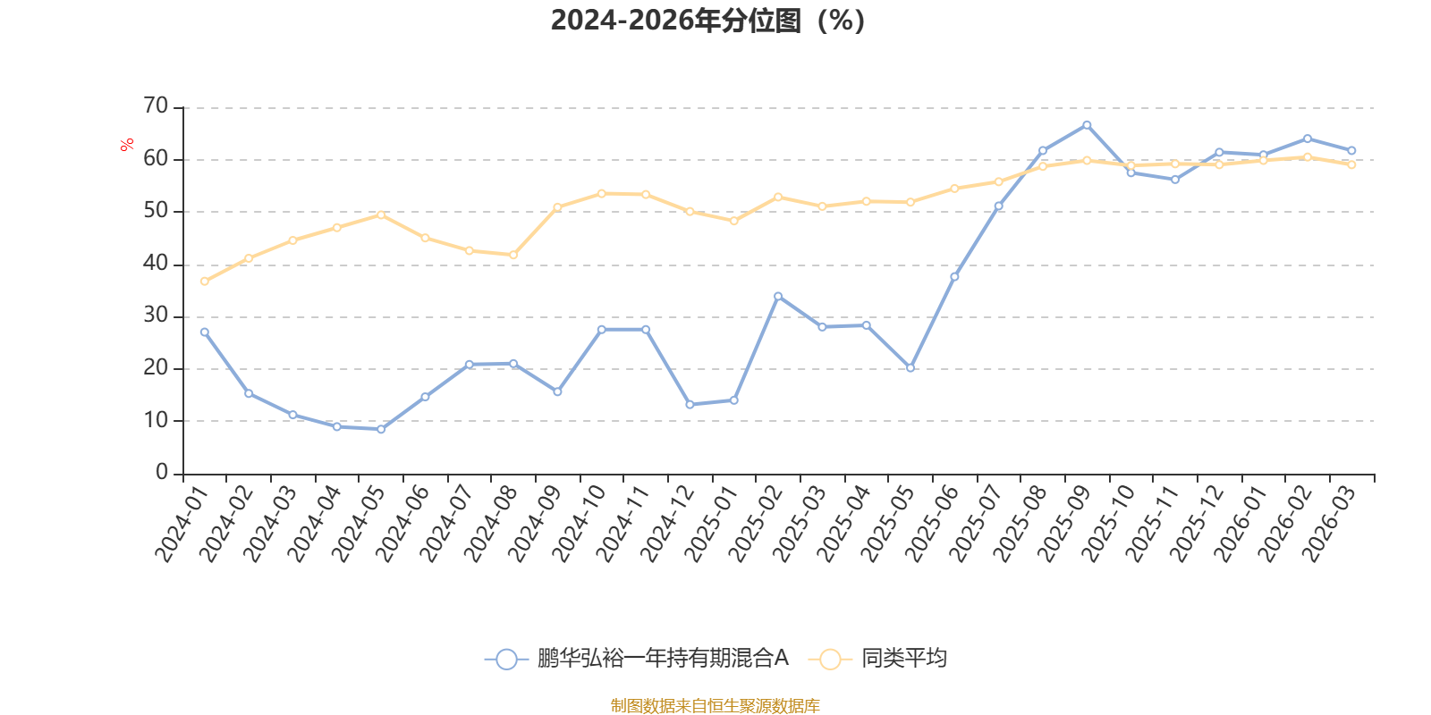 通过所选区间该基金净值增长率分位图,可以观察该基金与同类基金业绩比较情况。图为坐标原点到区间内某时点的净值增长率在同类基金中的分位数。