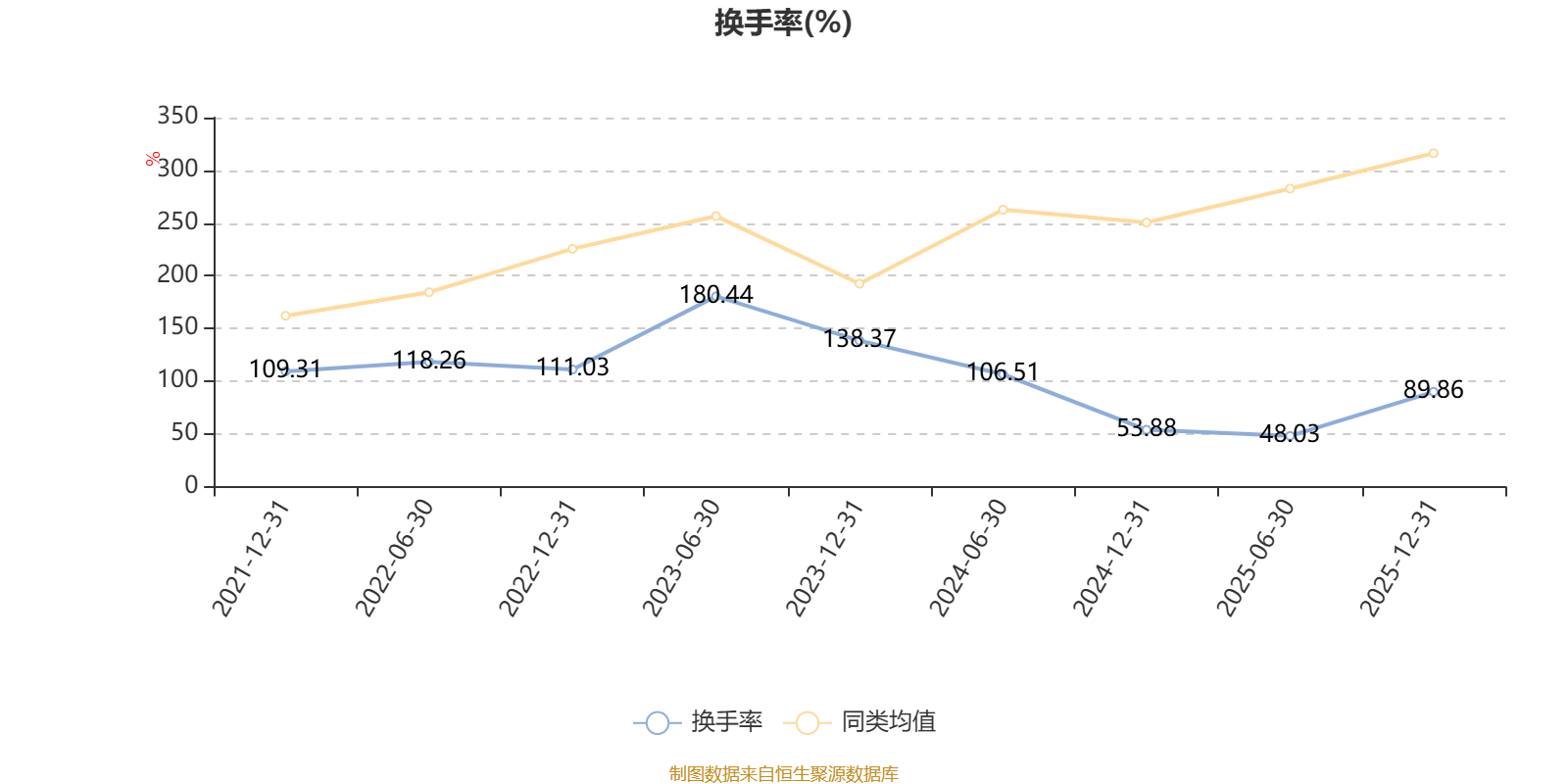 截至2025年12月31日,基金最近一年换手率约137.53%,持续低于同类均值。