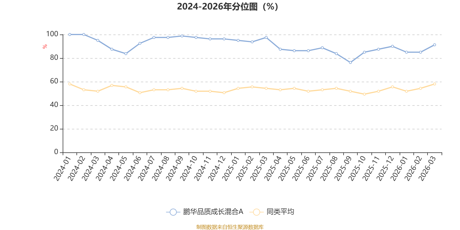 通过所选区间该基金净值增长率分位图,可以观察该基金与同类基金业绩比较情况。图为坐标原点到区间内某时点的净值增长率在同类基金中的分位数。