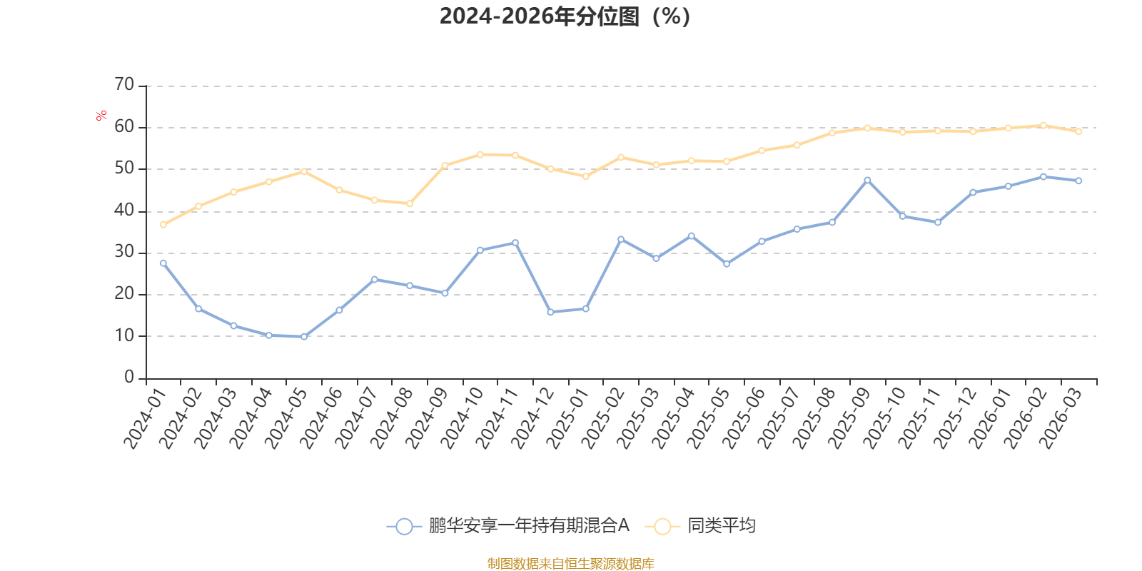 通过所选区间该基金净值增长率分位图,可以观察该基金与同类基金业绩比较情况。图为坐标原点到区间内某时点的净值增长率在同类基金中的分位数。